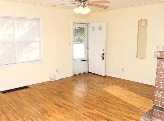 Close to University & shopping! Fresh paint in this two bedroom home with hardwood floors, large eat-in kitchen, updated oak cabinets & kitchen remodel 2010, ceiling fans in beds, kitchen & living room, window treatments, gas log fireplace, enclosed porch w/private backyard. Detach one car garage with sealed driveway. New roof 2012. New windows 2010.
