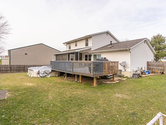 Move in ready entertainment oasis at this 4 bedroom, 2.5 bath house in North Canton. 2021 -New refrigerator and dishwasher. New roof in 2019 with new trim kits for the skylights in the family room and master bedroom. All 3 bathrooms completely remodeled in 2019. Kitchen remodeled in 2009 with new gas oven and microwave, cabinets, backsplash and sink. 3-season room with knotty pine walls is a perfect place to enjoy your morning coffee. Fully fenced back yard with above ground pool, hot tub and deck. Shed and kennel plus firepit and sandbox in the backyard too! Partially finished basement with a bar to entertain. Newer windows, sump pump, water softener with water filtration system and water heater. The curio in the kitchen and hot tub stays.