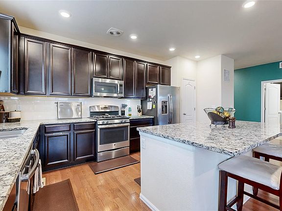 Over 3600 sq ft Introducing 3162 S Kirk Way, a captivating ranch model residence in Aurora blending modern sophistication with timeless charm. Located in desirable Conservatory, this home offers an unparalleled living experience. The open floor plan welcomes you into a space flooded with natural light and sparkling wood floors, leading to a spacious living room boasting a gas fireplace, formal dining area, and a gourmet kitchen with high-end appliances, full slab granite counter tops and an eat in island. The main level Primary suite is a tranquil sanctuary, featuring a spacious layout, plush carpeting, and an en-suite bathroom with a luxurious soaking tub and huge walk in closet. Two additional well-appointed bedrooms for guests or a home office cater to various needs. Full unfinished basement is ready for your additional bedrooms or theater. The meticulously landscaped backyard serves as an outdoor oasis, perfect for relaxation and entertainment with full privacy fence, stamped concrete and box garden. Front yard offers curb appeal with custom concrete edging and manicured lawn. Need additional parking? You've got it in the large driveway. Conveniently located near schools, parks, shopping, and dining in nearby Southlands, this property offers both comfort and accessibility. Additional features include a three-car garage, central heating/cooling, solar panels, and a dedicated main level laundry room. This home is the epitome of style, functionality, and comfort, making it a rare find in the Aurora real estate market. Don't miss the chance to call 3162 S Kirk Way home – schedule your private tour today!