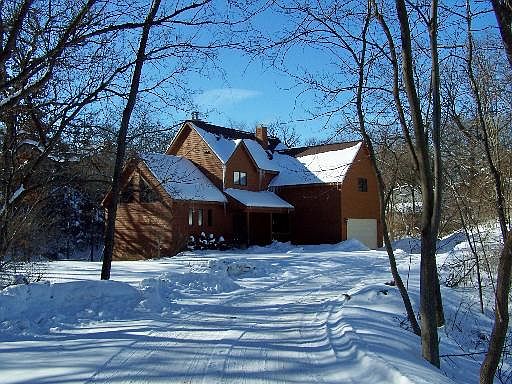 Almost 4000 sq.ft home tucked back in the woods. Rustic feeling with huge room sizes. Knotty pine ceilings that peak at 20 feet high in the kitchen and greatroom. Huge master on 2nd floor with a 20x20 bonus room and large masterbath. 2 brick fireplaces. Full walk-out finished basement with high ceilings. Awesome home on a beautiful setting.
