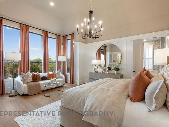 This stunning 218 plan is on a sought-after northwest facing water lot and is full of upgrades such as a primary bedroom extension, sliding glass doors to the extended outdoor living area, a freestanding tub in the primary bath, a stunning farmhouse kitchen with vaulted ceiling, and a single 16x7 garage door. Included are the fireplace in the family room as well as the hutch in the kitchen and dining area. Jordan Ranch's immense amenities as well as future amenities including pickle courts, sand volleyball courts, and disc golf. Brand new on-site elementary school is now open. H-E-B grocery store is currently under construction.