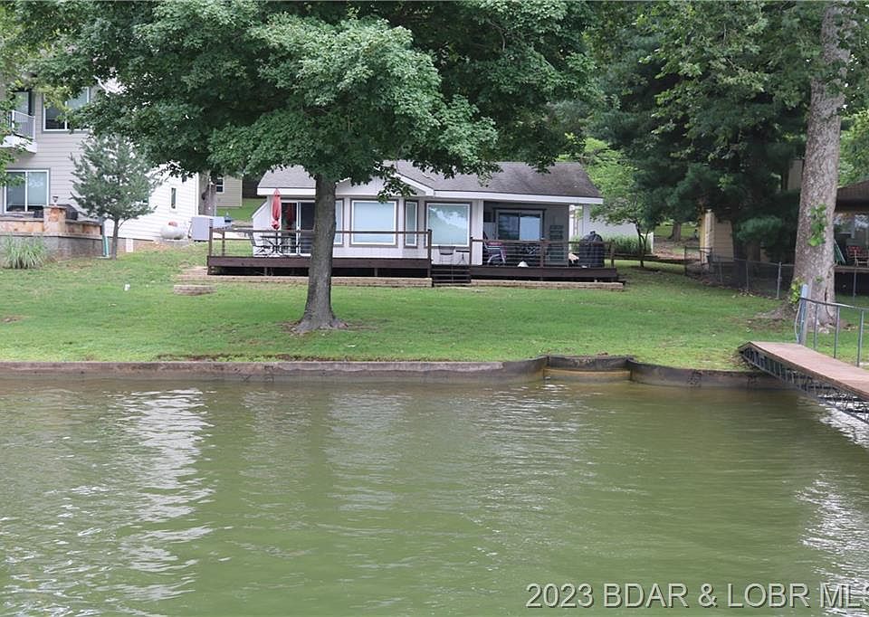 True turn key ranch home on premium level lakefront. You will love the light and bright open floor plan with vaulted ceilings and plenty of glass to enjoy the magnificent view. Home is totally updated and flows great with generous modern kitchen, large master suite with private bath. Enjoy outdoor entertaining on the covered patio and lakeside deck overlooking the beautiful shaded setting and tremendous lake view. Plenty of good level parking, storage shed and lots of room for expansion, and to add a garage. Good water depth and perfect O road location and lake location in cove overlooking coveted Millcreek cove on the Gravois 4 mile mark. Large dock envelope for bigger dock if desired. Make no mistake this is premium property with picture perfect lakefront