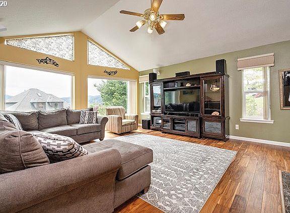 - RoomLivingRoomFeatures: Ceiling Fan(s), Hardwood Floors, Vaulted Ceiling(s), Sound System
