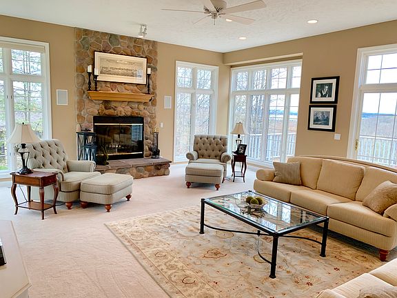 Enjoy relaxing panoramic views of East Bay from this custom 2 story 5 bedroom, 4 bath, 3 car garage home in desirable Holiday Hills. Foyer entrance welcomes you into a large living room with gorgeous stone fireplace , then opens into a large high end kitchen with granite, stainless steel hood, sub zero refrigerator, wolf range, tile back splash and loads of room for a busy kitchen. A large main floor master bedroom suite features its' own private bath, custom tiled shower with whirlpool tub, walk in closet and gorgeous sunset views from a large slider onto the private back deck. While upstairs you'll find 3 bedrooms and a large bath for kids and/or guests. The lower level is finished with large family room complete with wet bar, bedroom and ample storage space. Exterior space features a large deck the length of the home, exterior lights and pretty landscape. Don't miss out on this one of a kind Holiday Hills home.