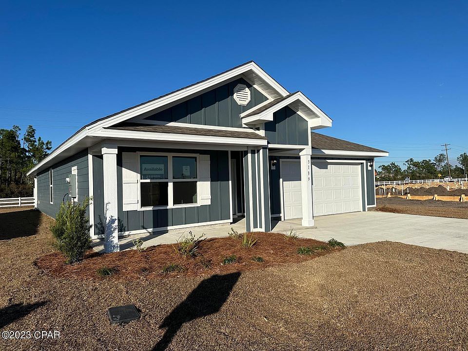 New construction in Hodges Bayou located on a large corner lot. The Cali floorplan features traditional 8' ceilings, engineered Vinyl Plank flooring in all common areas of the home and carpet in bedrooms. Open concept floor plan for entertaining. The kitchen has a center island, a large pantry, White Cabinets with durable quartz countertops. The kitchen is equipped with Brand name SS Range, Dishwasher and Microwave. A standard Smart Home package includes a KwikSet keyless entry, Skybell doorbell, automated front porch lighting, an Echo Dot device, and Quolsys touch panel which can be integrated to control your lighting, thermostat, front door and so much more. A builder 10 year structural warranty is also included. Hodges Bayou is just a short drive to schools, restaurants, beaches, and all that Bay County has to offer. Family time can easily be enjoyed biking or taking evening walks to catch those gorgeous sunsets over the bayou. Sidewalks wind throughout for you to enjoy nature at its finest.