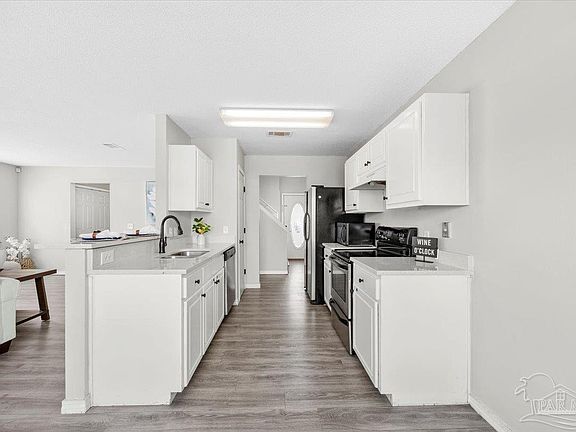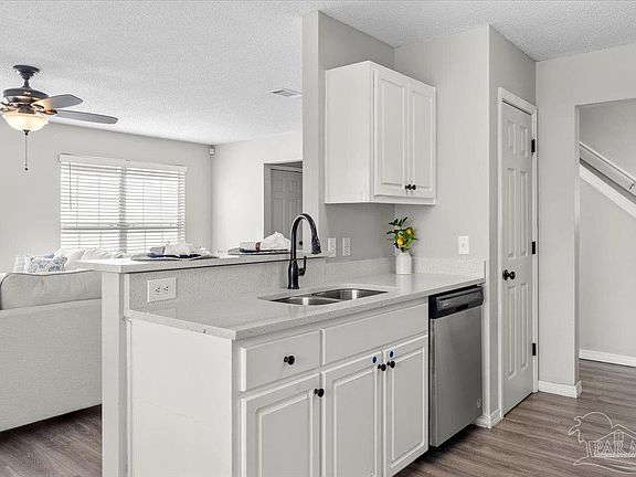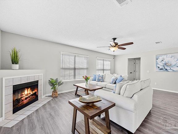 New Listing in The Villages at Marcus Lake You won’t want to miss this beautifully updated, open, and spacious home in one of Pensacola’s most desirable communities. The first floor features a bright and airy great room with a corner fireplace, a galley kitchen with new quartz countertops, pantry, refrigerator, stove, and dishwasher, plus a large dining area perfect for gatherings. You’ll also find a convenient half bath and a laundry closet with gas and electric hookups. Upstairs, you’ll enjoy three bedrooms and two baths, including a generous master suite with two large walk-in closets, a dressing area, and a master bath with a double vanity and a private water closet. The third bedroom is oversized — ideal as a second master, playroom, or home office. Additional highlights include: Fresh interior paint Quartz countertops in kitchen and baths Fully fenced backyard with privacy fence Two-car garage Roof, upstairs sinks, outdoor AC unit, and hardwired smoke detectors replaced in 2019 Located in The Villages at Marcus Lake, you’ll love the community atmosphere and peaceful walks to the lake. This home is truly move-in ready — schedule your private showing today.