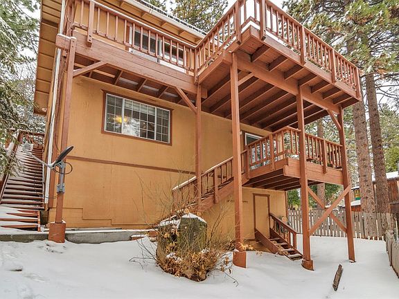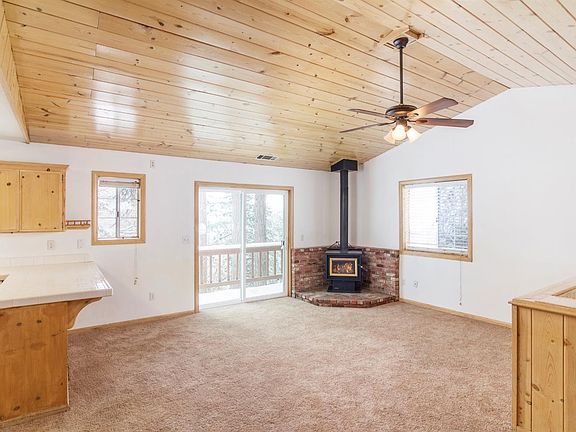 Perfect getaway home with new flooring, freshly painted inside and out, and level entry right onto a parking deck. The vaulted open beamed ceiling and knotty pine cabinets and trim give the home a mountainy feeling. Both levels have decks to enjoy the beautiful forest views and the yard is fenced. This is a great location for commuters with easy access in and out on to the main highway.