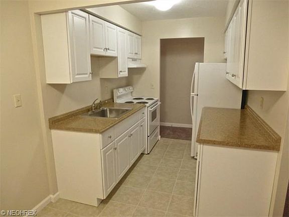 Totally updated one bedroom townhome at Bayridge Condominiums in Willowick. Everything is brand new in the kitchen including ceramic floors, new cabinets and counters. All appliances included! Freshly painted and new carpeting throughout. Large living room features a huge bay window with views of the condo green space and lawn. Bathroom nicely updated too! Low HOA fee covers all utilities except electric. Even a garage space and storage unit are included! Conveniently located only 15 minutes to Downtown Cleveland. Much cheaper than renting! Tastefully renovated, clean, neutral and ready for you to move right in!