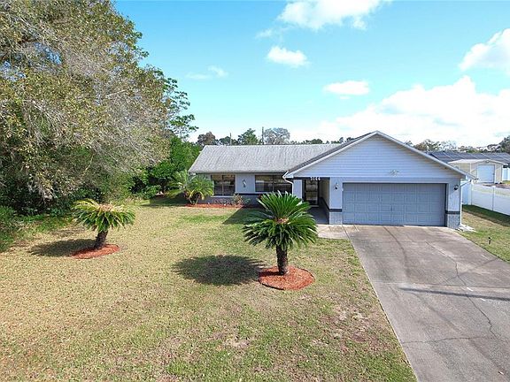 Super nice and well cared for home with 2 bedrooms, 2 full baths and a 2 car garage. Located on a nice oversized fenced lot. Split bedroom floor plan. Vaulted ceilings, REAL WOOD FLOORS in the great room, dining, kitchen and foyer. Master bedroom with its own full bath and a walk-in closet. Good sized guest bedroom with a big window to the back yard. An oversized laundry room with washer and dryer, set tub and plenty of extra room for additional storage. The kitchen has had some updates and presents beautifully. The rear lanai is vinyl window enclosed, there is an open deck, a fire pit and fountain in the backyard. There is also a storage shed in the backyard. There is a covered front porch, decent lawn and landscaping and a sprinkler system. Please take a moment and view all the professional photos and virtual tour.