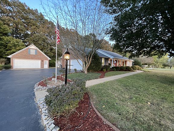 Come check out this beautiful well maintained all brick ranch style home in a great neighborhood!!! This home is move in ready! 1.08 acre lot that's easy to maintain/mow has a serene country feel but close to town! Features a large master bedroom with en-suite, a spacious eat-in kitchen and a formal dining room. All kitchen appliances stay plus washer/dryer. Living room with fireplace and custom built in shelves has access to a 13x10 deck. The nice private back yard includes a 12x12 storage building with shelving which is perfect for lawn mower storage, gardening tools, etc. The large covered 30x14 patio on the back of the home is perfect for entertaining or just sitting and relaxing. You can also sit and relax and watch the sunsets on the large front porch overlooking a level front yard and an open field. Attached heated/cooled 2 car garage with wall shelving and a work bench AND detached 2 car garage with upstairs bonus area provides endless possibilities! This home is a must see!!!