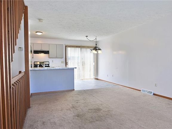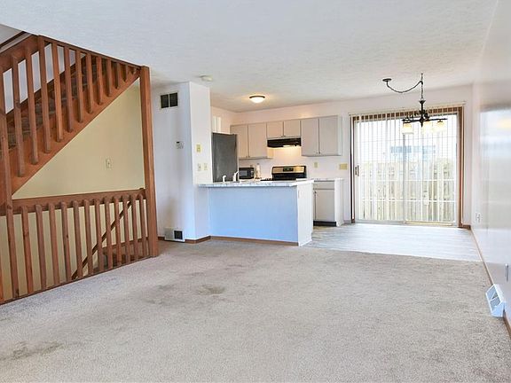 Spacious, sun-filled rooms await you at this beautifully kept condo in Lakeview School District! This comfortable residence offers a spacious, open first floor layout as its lit from both ends by large picture widows and sliding patio doors alike. The carpeted great room runs along the wood trimmed stairways as you make your way towards the kitchen and nearby eat-in dining. Ash colored vinyl plank flooring departs from the carpets as it runs between the galley layout while the main counter doubles as additional bar-top seating. A stainless refrigerator and oven join the gray colored cabinetry along with a dishwasher. Steps away, the private rear patio is fenced in for easy relaxation. Upstairs, a pair of carpeted bedrooms boats large closets and plenty of natural light. A full bath awaits at the landing with a single vanity and shower. Downstairs, a bonus room is located before both laundry with wash and dryer staying and utilities. Don't miss your chance on this move-in-ready home! Additional features include: One car garage, new vinyl plank flooring, newer hot water tank, and a one year home warranty!