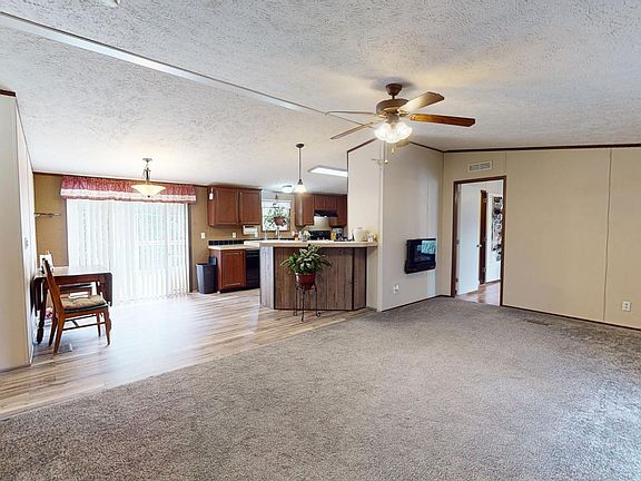 Welcome to your ideal retreat just outside the city limits! This charming 3-bedroom, 2-full-bathroom manufactured home offers a perfect blend of comfort and functionality. The spacious eat-in kitchen, with appliances included, features a handy pantry and connects seamlessly to a cozy living area. The laundry room is equipped with a convenient wash sink for added ease. Step outside to your private oasis: enjoy sunny days by the above-ground pool or relax on the back deck overlooking a fenced backyard, perfect for gatherings or peaceful solitude. The property also boasts a 20x30 large detached garage/shop with a durable concrete floor, providing ample space for projects or storage. With a newer metal roof and all-electric utilities, this home combines modern efficiency with a serene, rural setting. Come experience the tranquility and practicality of this delightful property.