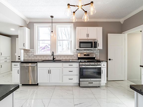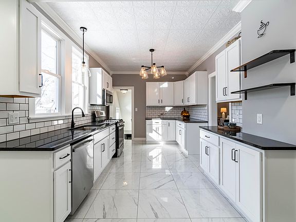 Step into this beautifully renovated turn-of-the-century farmhouse, where historic charm blends seamlessly with modern sophistication. This home’s timeless details will captivate you, from the original hardwood floors and elegant stair railing to the exposed brick accents that add warmth and character throughout. The open-concept design creates a spacious and inviting atmosphere, perfect for both everyday living and entertaining. The formal dining room is a showstopper, featuring classic wainscoting and crown molding that carries into the living room, adding a touch of elegance to these spaces. The heart of the home is the spacious and beautifully designed kitchen, featuring new appliances, granite countertops, soft-close cabinets, elegant porcelain tile floors, and a decorative ceiling that adds a touch of charm. Whether you’re cooking for a crowd or enjoying a quiet meal, this kitchen provides both style and functionality. Upstairs, the owner’s retreat offers a peaceful escape with a large walk-in closet, an upgraded tiled walk-in shower, and a private balcony, perfect for soaking in the views or unwinding at the end of the day. A convenient upstairs laundry room makes everyday living even easier. The attached garage is as practical as it is polished, with epoxy flooring, trimmed-out windows, heated and fully insulated, and an upgraded garage door opener. Outdoors, the backyard is an entertainer’s dream, featuring a covered patio, extra parking, backyard access, and a versatile outbuilding that can serve as a she-shed, garden house, or additional storage space. The finished basement offers even more space to entertain, with a spacious bonus area complete with a wet bar, a cozy nook for a home theater, and a convenient half bath. This versatile space is perfect for hosting friends or creating a private retreat. Blending historic charm with modern upgrades, this exceptional home is truly one of a kind. Excellent location, with plenty of off street parking, that is convenient to shopping, dining, downtown, parks, and entertainment. Schedule your private showing today!