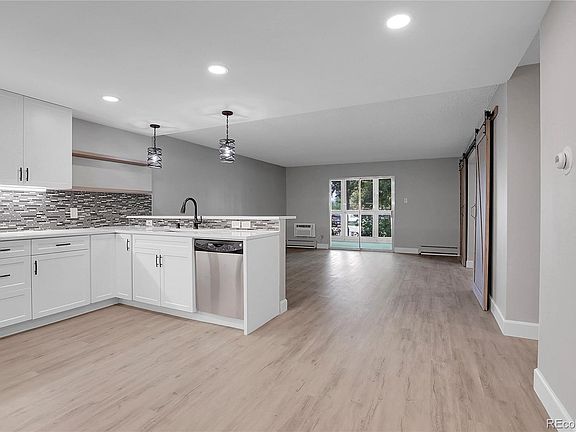 This home is eligible for a 1.75% of the loan amount incentive, call for more information. This is a MUST SEE! Completely remodeled. This condo is also available for a lease to own. Living in Heather Gardens is a lifestyle. This first level unit has been renovated with a contemporary open floor plan. The kitchen has recessed lighting, new stainless steal appliances, under cabinet lighting, floating shelves, a breakfast bar, lovely backsplash. Both bathrooms have been completely remodeled, backlit LED mirrors, new tile and new fixtures and new vinyl flooring through out the home. There is a beautiful barn door in the second room which could be used as a bedroom or a dinning room or den. Being on the first floor allows for easy access outdoors through the covered patio with a covered parking spot and a storage unit on the 4th floor and additional guest parking across the street on the top level of the garage. On the corner of I225 and Parker Road makes this complex centrally located and easy to get to many Denver amenities. Heather Gardens offers many amenities for it's residents including: Indoor pool, Outdoor pool, Clubhouse, Restaurant, Nine Hole Golf Course, Exercise Facility, Tennis Courts, Pickle Ball Courts, Outgoing Community Lifestyle. For more information about living at Heather Gardens please visit their web site at https://www.heathergardens.org/