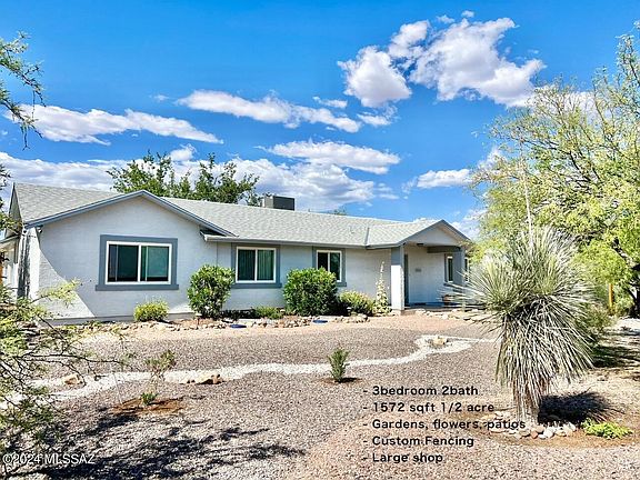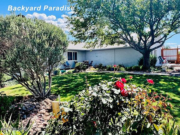 Welcome to your oasis in the desert! This 3bedroom 2 bath home is encircled with a custom built fence with built in benches and patios. There are many full grown trees with wandering paths and flowers in bloom. The automated watering system cares for all of the greenery as well as the garden boxes that are currently growing tomatoes! There are two large outbuildings. The one in the yard has a living area, sink and storage closet. It can be used as a workshop or could easily be converted into an outdoor guest quarters. Inside, you will enjoy two large living areas and a generous sized master suite with a soaking tub to relax in. All appliances are included. Call for an appointment today!