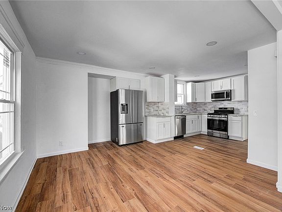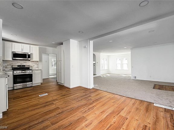 Welcome to this gorgeous renovated Colonial! This 4 bedroom, 3 bath home has a new two-car detached garage and features a large open floor plan. The living room leads to a front porch area, and the eat-in kitchen has brand new white cabinets, granite countertops, and stainless steel appliances. You can't miss the family room with the big bay window! Recessed lighting, all new light fixtures throughout, and plenty of windows give this home lots of natural light. There are also new vinyl floors and carpet throughout, as well as fully renovated bathrooms. The furnace and central air are brand new, and the basement was waterproofed in September 2022. The laundry is conveniently located on the second floor. On top of that - the roof, vinyl siding, windows, and driveway are all brand new. This home is conveniently located 15 minutes away from University Circle, The Cleveland Clinic University Hospital & Case Western Reserve! Make this your home today - plus inquire about a 12-year tax credit available for owner-occupants.