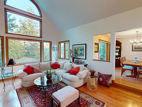 Luxurious Single-Level Home on 2.25 Acres with Two Owner Suites and Stunning Outdoor Spaces!Welcome to this spacious 2,981 sq ft single-level home, nestled on 2.25 beautifully landscaped acres. Boasting two primary suites, both featuring walk-in showers, one with a large walk-in closet and direct access to the deck and private hot tub—perfect for ultimate relaxation. This thoughtfully designed home offers two additional bedrooms, each with cozy window seats, ideal for family or guests, and a roomy family room with a toasty woodstove for the cooler Fall evenings. The formal living area impresses with a fireplace, dramatic vaulted ceilings, and large windows that fill the space with natural light.The gourmet kitchen is a chef’s dream, featuring a central cook island, stainless steel appliances—including a built-in oven, microwave, dishwasher, and large refrigerator—tile floors, ample wood cabinetry, granite countertops, and a walk-in pantry. Enjoy casual meals in the adjoining eating area or host elegant dinners in the formal dining room.Outdoor living is a breeze with expansive decks, including a pass-through window from the kitchen to the deck, making al fresco dining and entertaining effortless. Enjoy serene views of the surrounding forest, while the private deck off the primary bedroom offers picturesque orchard views and access to the hot tub.Additional highlights include a newer roof (just 5 years old), a thriving orchard with apples, pears, plums, peaches, figs, plumquots, lemons, and limes, and a fenced garden area complete with a potting shed/greenhouse equipped with water, heat, and a concrete floor with a drain—perfect for the avid gardener.With a circular driveway, extra parking for boats or trailers, and abundant space to add a large shop, this property is the perfect combination of luxury, comfort, and practicality.