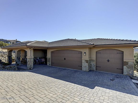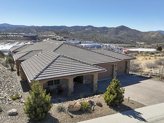 This beautifully designed 3,204 sft home is located in the very desirable Ranch at Prescott just minutes from downtown Prescott. The panoramic mountain top views will leave you with a lasting impression upon entering. The main living on the entry level includes a beautiful chef's kitchen, dining area, large master suite, 2 additional bedrooms, a full-size bath, powder bath and covered back deck. The lower living area is complete with an open main/family room, an additional bedroom, full-size bath and a covered back patio. The possibilities for this space are endless! The large 3 car garage with epoxy covered flooring is a bonus!