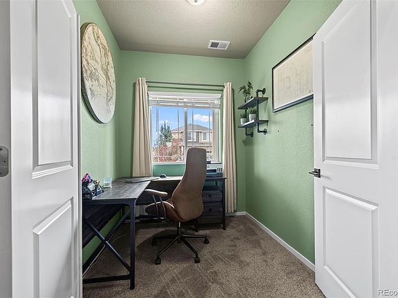 Spacious 4-bedroom plus office home located on a corner lot and backs a greenbelt. Inside, enjoy an open main level with an office, updated half bath, spacious family room, kitchen, and dining area. The eat-in kitchen offers a large center island, pendant lighting, black appliances, a pantry, dining area and convenient access to the backyard. Upstairs, you'll find a spacious primary suite featuring a bath with dual sinks, a walk-in shower, and a walk-in closet. Three additional bedrooms and a full bathroom provide plenty of space to suit your needs. The laundry room is conveniently located on the upper level, alongside a large linen closet for additional storage. The unfinished basement offers potential for future customization or extra storage. The outside provides a great entertainment space, featuring a covered patio off the kitchen and a grassy area overlooking a greenbelt. The neighborhood is situated amongst walking paths & trails, open space, lakes, and schools. Easy access to downtown Loveland, HWY 287, restaurants, and shopping.
