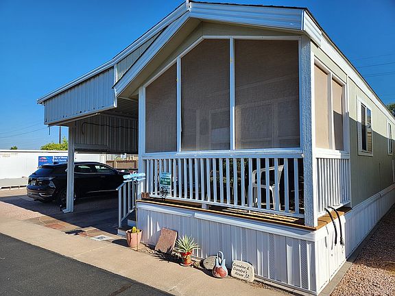 Private Owned Park Model 2009 Cavco with Arizona Room (Price does not include Lot) LAMINATE FLOORING THROUGHOUT (EXCEPT BEDROOM), 2 FULL SIZE BATHROOMS, FULL SIZE LAUNDRY ROOM WITH WASHER/DRYER, FRONT PORCH (ENTERS INTO PARK MODEL, SEPARATE SMALLER DECK THAT ENTERS INTO AZ ROOM, FRESHLY PAINTED, EXTRA AWNING OVER AZ ROOM WITH EXTRA R-30 INSULATION, PARK MODEL WAS TURNED INTO HIGH SIDE TO ACCOMMODATE RAISED AZ ROOM, 6X12 SHED WITH ELECTRIC AND SIDING TO MATCH (ENTRANCE FROM THE BACK PATIO WITH PAVERS. THIS HOME HAS TO BE SEEN, TOO MANY UPGRADES TO LIST.