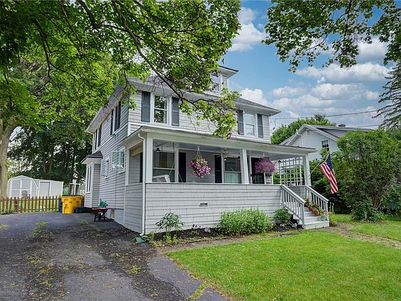 Charming 1930 Colonial in the heart of the Village of Caledonia! This 5-bedroom, 2-full bath home offers 1,743 sq ft of character and space, with one bedroom conveniently located on the first-floor w/a gas woodstove. Enjoy relaxing on the open front porch or cozy up in the spacious living room featuring hardwood floors and an electric fireplace. The living area flows into the dining room and kitchen—ideal for entertaining. The upstairs bathroom was beautifully renovated in 2015 with a jetted tub and ceramic tile. Numerous updates include a complete tear-off roof in 2021, furnace in 2017, H2O tank in spring 2024, and 200-amp electric service. Most windows are updated vinyl Thermopane. Kitchen appliances (refrigerator, gas stove, and dishwasher) are all less than 5 years old. Some finishing touches still needed. Located in the Caledonia-Mumford School District—just a short walk to the school, library, and village shops, and minutes from the Genesee Country Village & Museum! Delayed showings until Friday June 20th at 9:00AM. Delayed negotiations through Wednesday June 25, 2025 at 12PM. Please allow 24hrs for all responses to offers. Open House Sun June 22nd from 1-3PM.