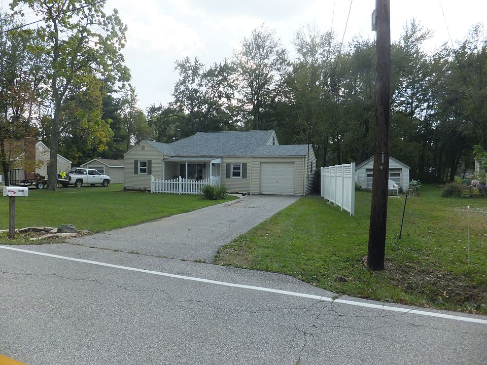 This gorgeous 3bdrm/1bath Country Charmer has been totally rehabbed. New eat-in kitchen, bath, carpet, paint, roof & gutters! Features vinyl double-hung windows, ceiling fans, huge laundry rm w/cabinets, central hvac, covered front porch, covered back deck overlooking beautiful country setting w/mature trees, over sized garage. Convenient location