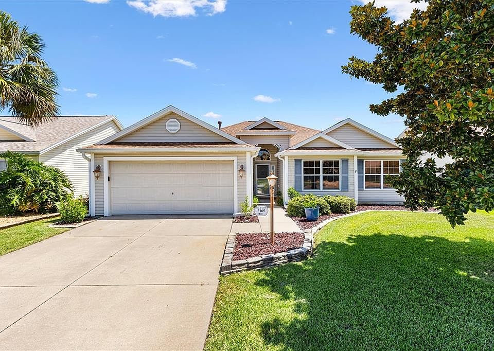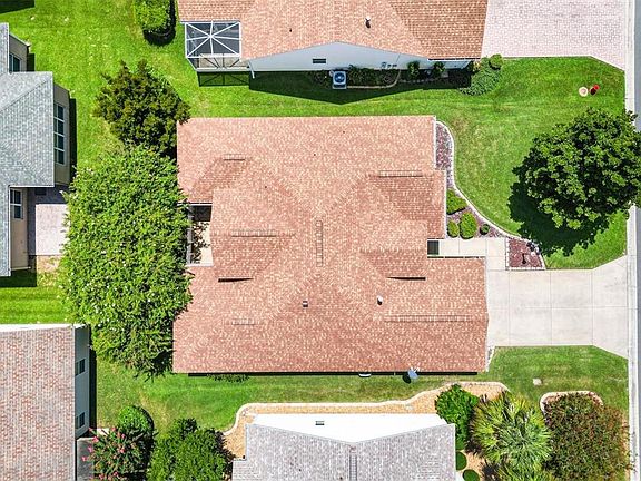 ROOF 2021 HWH 2022 BOND PAID! 4 miles to Sumter Landing!! Beautiful 3/2 Hawthorne model nestled on a quiet cul-de-sac in the Village of Polo Ridge! Covered front porch opens to a bright entry featuring glass panels, a transom window, and storm door. Inside you are welcomed by a spacious foyer complete with a convenient coat closet. The expansive living room with soaring vaulted ceilings and a wall of windows for natural light includes a remote-controlled ceiling fan with light kit. The home features luxury vinyl plank floors throughout the main living areas, tile in the baths, and vinyl in the kitchen for easy care. The layout includes a separate formal dining room, a bright eat-in kitchen for casual dining with stainless steel appliances, gas stove, center island, pull-out cabinet shelves, and a pass-thru to the dining room. French doors from both the kitchen and dining area open to the wrap-around enclosed lanai, complete with pull-down shades, creating a perfect space for relaxing or entertaining. The master suite is a true retreat with double French doors, a spacious walk-in closet, and an ensuite bath featuring a dual vanities and a step-in shower with built-in bench (no tub). The split floor plan provides privacy for guests, with two additional bedrooms and a guest bath with jetted tub. The third bedroom has no closet, making it versatile in nature and can easily serve as an office, den, or craft room, catering to your lifestyle needs. Additional highlights include: ceiling fans throughout, gutters around the home, gas dryer, a termite bond with Massey for peace of mind, and a charming paver patio in the back, perfect for grilling and outdoor gatherings. Don’t miss this opportunity to enjoy low-maintenance living and convenience in a friendly neighborhood. The Polo Club and Fields, Saddlebrook Recreation Center, Laurel Manor Recreation Center and Pool and Hawks Bay Executive Golf Course are all less than 1 mile away. This location is just minutes to shopping, dining, doctors and all the activities the Villages provides. Watch our video and make your appointment to see this house today so you can start living The Villages Dream!