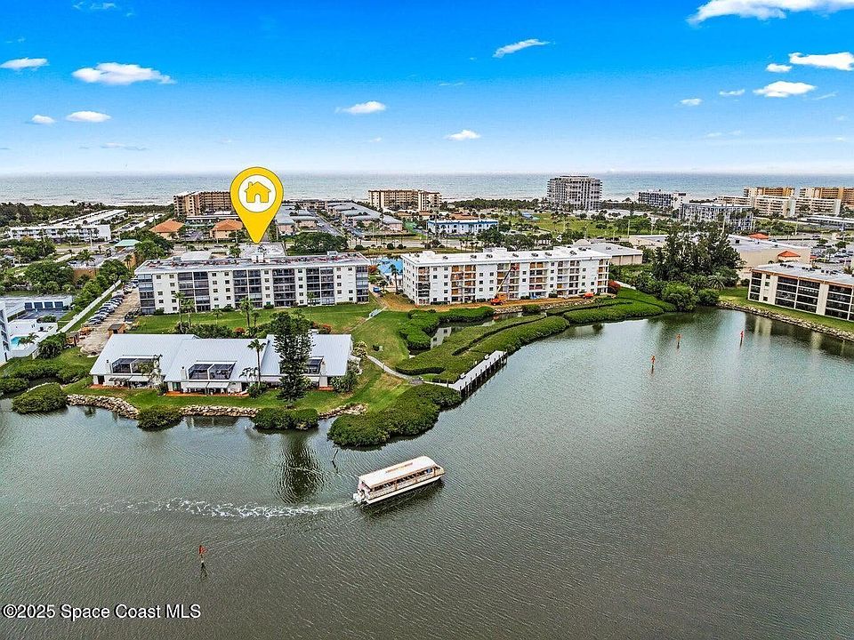 VACANT Immediately available. Welcome to a premier resort-style community nestled on the Banana River and Thousand Islands, offering amazing sunsets. Views are amazing on the l pond. However walk to the private dock for sunset. Enjoy luxurious coastal lifestyle living with a beach across the street. It's conveniently located within walking distance to restaurants, bars, and shopping. The garage is conveniently located just outside. Community amenities include an Olympic-sized heated pool, hot tub, pickleball/tennis courts, fishing dock, and more. New balconies are being constructed. Seller will pay the assessment in full before closing. New sink in Master bath. Freshly painted and floors steam-cleaned