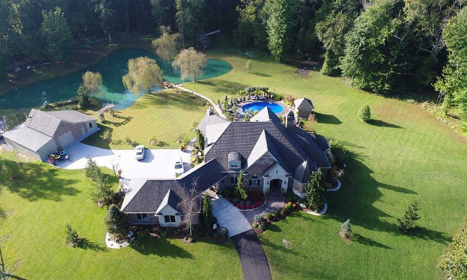 Price Reduced!Exquisite custom home on 5 acres with attention to detail everywhere! Luxury abounds! Granite counters, hand cut stone, 3 fire places, huge screened porch, private lake, extra garage for boat or RV, newer in-ground heated pool w/poolhouse, geothermal HVAC, Irrigation System & full finished LL! Located on paved private drive. Must See!