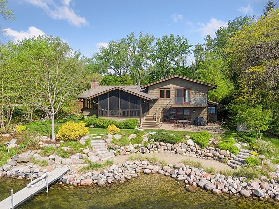 Discover lakeside paradise in this Frank Lloyd Wright-style gem, meticulously redesigned by SALA Architects and brought to life by Vujovich Design Build. Situated on 100 feet of coveted south-facing lakeshore along Priest Bay, this 4-bed, 3-bath craftsman bungalow offers a harmonious blend of classic elegance and modern comfort. Indulge in the luxuries of lake living, from the newly renovated master bath with heated floors to the inviting family room with a convenient bar area. Step outside to enjoy the tranquil screen porch or retreat to the lower-level amusement room for endless entertainment possibilities. With its prime cul-de-sac location and panoramic lake vistas, this home is an oasis of serenity and sophistication on Lake Minnetonka.