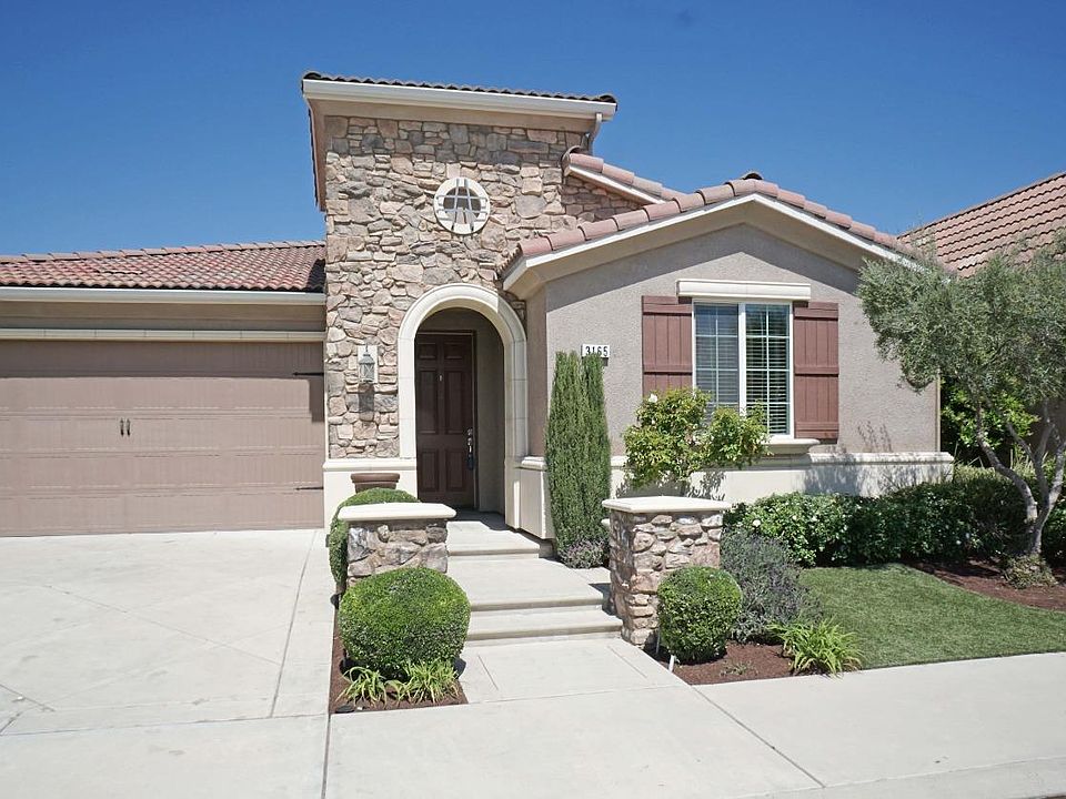 Welcome to this charming home that is nestled in a desirable neighborhood in the heart of Clovis. The open floorplan seamlessly connects the living room, dining, and kitchen, creating an ideal setting for entertaining guests or simply enjoying with family. Enjoy this chef's kitchen that boast dark wood laminate floors throughout, large granite slab center island, butler's pantry with upgraded granite topped cabinet, and large pantry. A focal point of the Livingroom is the modern fireplace and white oak mantel, flanked by an open bookcase and bench seating that includes convenient storage space. This meticulously maintained home is sure to impress, with 2 bedrooms with a full bath in between on one side of the home and the Primary suite and one other guest bed/bath on the other side of the home. The spacious Primary bedroom has a private bath with both soaking tub & shower stall and includes a large walk-in closet. Take advantage of summer BBQ's with friends and family in this nice sized back yard with extended concrete and spacious grass area. The front yard features synthetic lawn for easy care. Enjoy walking distance to Pasa Tiempo Park & Pasa Tiempo North Park. Upgrades: stone elevation in front, concrete side yard and extra-large concrete patio, syn lawn in front yard, crown molding, built in bookcase and storage bench, custom fireplace & mantel, own solar, tankless water heater and hanging wire storage shelving in garage.