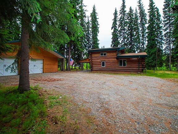 Welcome to the enchanting log home nestled in the serene wilderness of North Pole, Alaska! This remarkable property offers a perfect blend of rustic charm and modern comfort, showcasing a wealth of features that make it a truly captivating residence. Upon arrival, you are greeted by a cozy small entry that sets the stage for the warmth and character that awaits. To the left, a thoughtfully designed bathroom beckons, providing convenience and functionality for you and your guests. Step into the heart of the home, where a delightful kitchen invites you to unleash your culinary creativity. With its ample counter space and storage options, meal preparation becomes a joyous experience. Adjacent to the kitchen, a spacious living room awaits, boasting grandeur in both size and ambiance. Natural light pours in through the sliding glass door, offering breathtaking views of the surrounding beauty while creating an inviting atmosphere. Imagine curling up by the crackling wood stove on chilly winter nights, enveloped in a cozy haven of tranquility. The main floor also features a generously-sized bedroom, providing a peaceful retreat for relaxation and rejuvenation. Awaken to the gentle rustling of leaves and the harmonious sounds of nature, seamlessly merging the indoors with the outdoors. Descend into the finished basement and discover two expansive rooms that can be customized to suit your desires. Whether you envision a home theater, a personal gym, or a versatile entertainment space, the possibilities are endless. A convenient laundry room adds practicality to your daily routine, ensuring effortless housekeeping. Make your way upstairs to a private sanctuary—a resplendent bedroom with its very own bathroom. This retreat offers privacy and seclusion, allowing you to unwind and indulge in a soothing bath or enjoy a restful night's sleep while relishing in the picturesque surroundings. Outside, the lot is enveloped in a majestic forest of trees, creating a sense of seclusion and tranquility. The property is located on the slough, a tranquil waterway that attracts an array of captivating wildlife visitors. From curious moose to graceful waterfowl, you'll be treated to an ever-changing spectacle of nature's wonders. Finally, completing this enticing package is an oversized heated two-car garage, providing ample space for vehicles, tools, and storage. This practical addition ensures that your winter adventures and outdoor pursuits are never hindered by the elements. Updated in 2023, new flooring throughout home, new paint in bedrooms/bathrooms, new appliances, new bathroom vanity and updated heating system. Embrace the magic of the North Pole, Alaska, and let this remarkable log home be your gateway to a life of serenity, natural beauty, and endless possibilities. Don't miss the chance to call this extraordinary property your own.