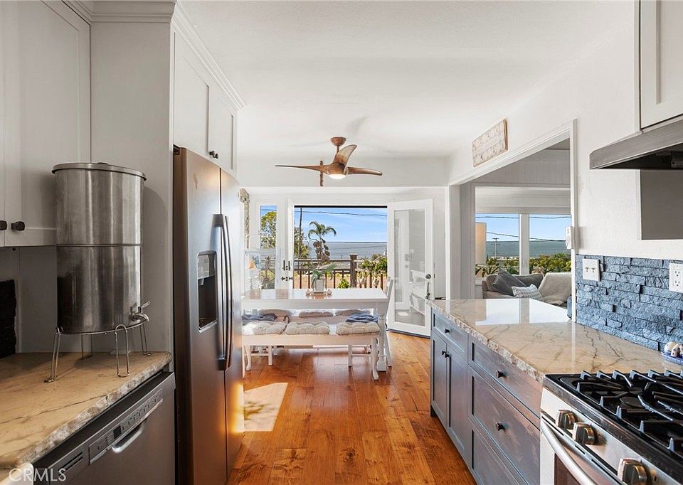 It's time to own your own slice of paradise in this coveted Laguna Beach enclave! Welcome to your serene seaside retreat in the heart of South Laguna Beach Village. Nestled along the coastal hills and picturesque coastline, this incredibly charming beach cottage (AKA The Treehouse) embodies coastal living at its finest. With sweeping views of the sparkling Pacific Ocean and easy access to the pristine Table Rock, 1000 Steps and West beach makes this property a true gem. There's a beautiful tree on this 2,100sft lot that sets the tone for outdoor living creating a sense of serene and unexpected privacy. Upon entering the second level you'll be pleasantly surprised as you take in a vast ocean view offering amazing sunsets and views of Catalina. The remodeled custom kitchen is filled with abundant natural light, plenty of cabinet space with hand forged hardware and features rough-cut edge quartzite counter tops. Open the French doors and enjoy indoor/outdoor living on the ample wrap-around deck creating the perfect environment for entertaining, while the living room's gas fireplace is a charming bonus on those chilly CA nights. The first floor hosts both bedrooms and bathroom with a private deck off the master. Property sits in the middle of a private and recently repaved street only a few blocks from south Laguna Beach restaurants and shops. This lot is truly unique; there's room to garden outside, swing from a tree and entertain on the large tiled patio under the privacy of an enveloping tree. And if you're looking for hiking trails, you'll find the expansive Valido Trail is a beautiful nature walk offering mountain and ocean views just minutes away.