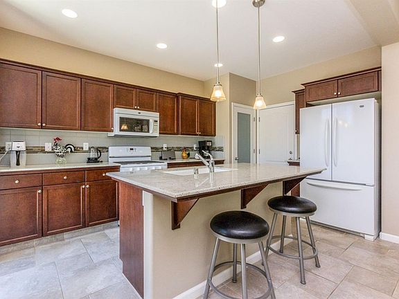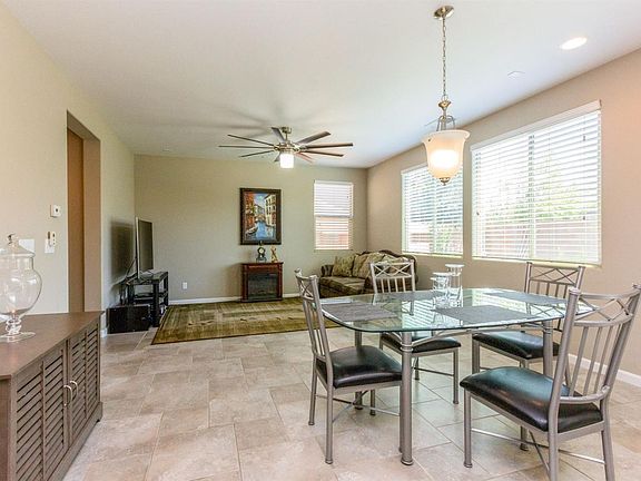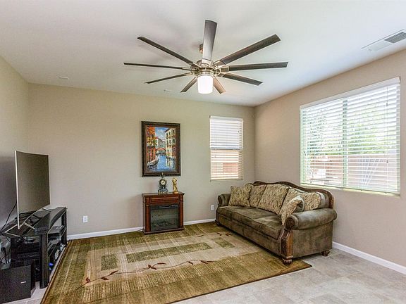 Very beautifully maintained McCaffrey home in a quiet, wonderful community. Step through the front door & you will think you're in a brand new home. Tiled flooring throughout the downstairs compliments the neutral tones. The comfortable living room is complete with a 5.1 surround system and boasts a 9-blade ceiling fan and extra insulation along the southern facing wall that keeps the home very cool during the summer months. Enjoy cooking in your open concept kitchen with large island that includes a big single basin sink and eating area at the end. Full tile blacksplahes and granite countertops compliment the colors of the home. The carpeted staircase carries you up to the bedrooms all of which are carpeted and inviting with soft neutral tones. Master bedroom boasts a large master bath with walk-in closet. All bathrooms have comfort height toilets and the laundry room is upstairs for your convenience. Easy care & drought tolerant ground covering -artificial grass- in rear yard.