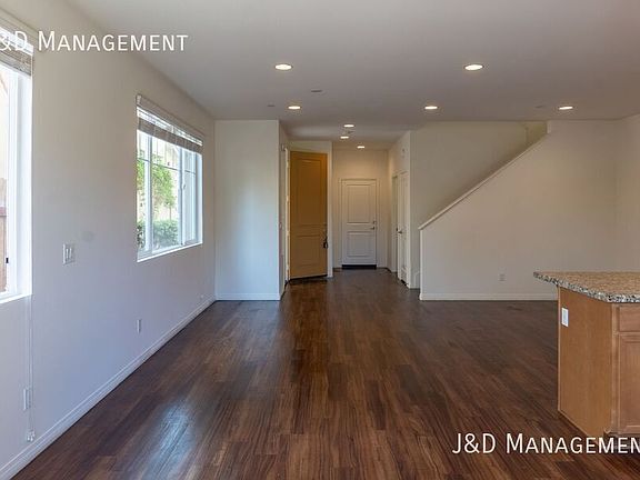 This 3-bed, 2.5-bath townhome features laminated floors, a spacious open kitchen, granite countertops, stainless steel sinks, and a fenced backyard with a patio. It has a laundry room, double garage, plush bedrooms, and two full baths. The townhome is near major freeways, dining spots, shopping centers, county parks, and excellent schools. Courtyard Garage Gated Entry Granite Countertops Hardwood Floor Large Closets Laundry Hookups On Site Management/ Maintenance Storage Space