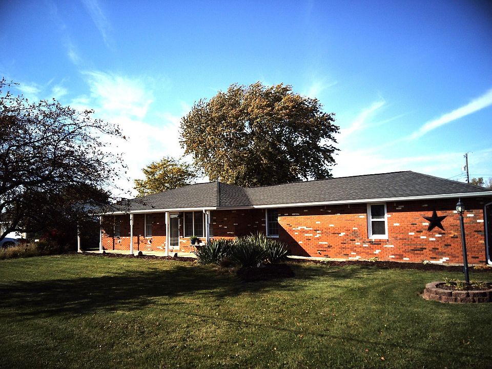 Super cute all brick 3 bedroom, 2 bath ranch. Convenient location to town, with country living feel. Open concept great room/formal dining room with hardwood floors, perfect for gatherings. Applianced eat in kitchen, primary bedroom with full bath. Large utility room with sink and storage. (Court House records do not include utility room in sq. ft.) Total square feet is estimated, buyer to verify. This home is move in ready. Upgrades are: septic 2014, plumbing and supply lines 2013, well July 2011, pressure tank 2015, roof 2014, furnace AC and duct work October 2022, appliances 2015. Whiskey Barrels do not remain.