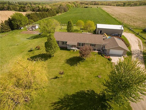 Sweet little Clarke county acreage with all the outdoor/indoor living comforts. So much to offer from beautiful views, large Morton outbuilding, shaded deck, above ground pool w/ slide & decking/fencing, fruit trees, covered front porch & much more! Home features over 2,000 sq/ft of finish and main level living w/ 2 bedrooms a full bath, front sitting area, formal dining, open kitchen with loads of counter space & storage that opens to the den. Master en-suite has whirlpool tub, step-in shower & dual vanity w/ a walk-in closet that leads to the laundry area. 2 car attached garage connects to home w/ convenient mudroom/breezeway that leads straight to the wash. Lower level has a 3/4 bath, family room, 4th bedroom with egress and studs just ready for finish and lots of dry storage. Only 10 minutes to Stephans State Forrest, 15 to Osceola amenities and less than an hour to West Des Moines Mills Civic shopping/restaurants.