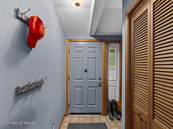 Tucked away on 6.26 serene acres, this custom-crafted retreat blends warmth and elegance with passive solar design and construction. The home's strategic design and construction combined materials and orientation angles that work to harness solar heat during the winter and minimize heat gain during the summer. The large brick chimney in the center of the home adds style and function, holding heat in the winter months. The interior tongue & groove ceilings and rich architectural detail heighten the thoughtful design. The gourmet kitchen features granite counters, stainless appliances, a butler's pantry, and breakfast bar perfect for gathering. A wall of double pane windows enhances the solar capacity of the home and fills the dining room, kitchen & rec/living room with light and nature views, while the cozy family room and office with French doors offer quiet comfort. Vaulted, beamed ceilings grace all bedrooms. The secluded primary suite includes a separate sitting room and the spa-like primary bath invites relaxation with a soaking tub. The main floor includes a large utility room and walk-in root cellar. Detached 2-car garage with covered walkway adds charm and convenience. Located minutes to the Crossings, Rt 80 and all major attractions-yet it feels worlds away.