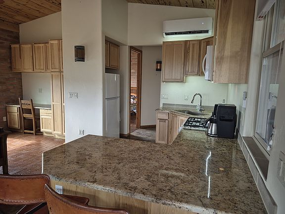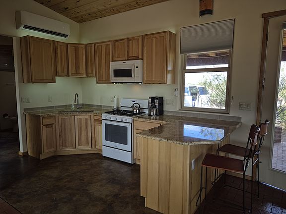 Indoor fireplace, built in desk. Adobe walls with brick floors and cedar ceilings. Bathroom has shower, no tub. Furnished-Dining table and 6 chairs, couch, 2 love seats, and has queen size bed. Can provide towels and linens, blankets etc.