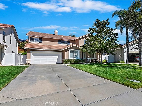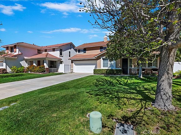 Welcome to the lovely community of Chardonnay Hills located within a few minutes of Temecula Wine Country! This 5 bed 3 bath home is situated on a quiet street at the end of a cul de sac. There are no neighbors directly across the street and the long driveway leading to the front of the home provides ample parking. Upon entering this beautifully maintained home you will notice modern and unique features, such as the casing around the doors and windows, crown molding, plantation shutters, wainscoting, and shiplap. Enjoy family time in the wide open kitchen around the huge center island or relax in the inviting family room that boasts several large windows that let in an abundance of natural light while providing beautiful views into the garden. There is tons of storage at every turn, including a massive walk in kitchen pantry and walk in closets in all four bedrooms on the second floor. The spacious master bedroom closet has several custom built in closet organizers. Private downstairs bedroom with full bath located on main floor, perfect for a guest room, home gym, or office. Recent upgrades include newer plush carpet in the second level bedrooms, new fencing, new exterior paint and an attic fan that cools the whole house during those warm summer nights while lowering the utility bill. The fenced in backyard is a private oasis filled with lush flowers and bushes, fruit trees and beautiful palms. It's a perfect setting to enjoy a morning cup of coffee or to unwind in the evening with a glass of wine. The large raised planter boxes in the side yard are a gardener's dream. Community amenities include two beautiful pools with hot tubs and picnic areas, a tennis court, a basketball court, beach volleyball, multiple playgrounds, and more!