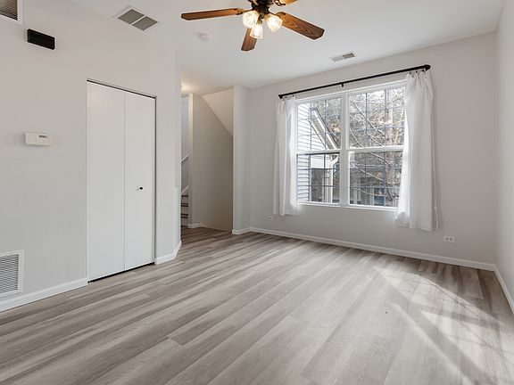 This great 2 bed 1.5 bath townhome in The Pines of Lakemoor has been freshly painted top to bottom. New wood laminate flooring, outlet covers, baseboards & trim throughout. Kitchen has eat-in area with slider to balcony; stone backsplash; stainless steel stove & refrigerator & new chandelier. Main bath upstairs has access from primary bedroom & hall. Primary bedroom has a walk-in closet. Newer fixtures & ceiling fans. 2nd floor laundry - dryer 1 year new. 2 car attached garage has additional storage area for all your extras. Minutes from Moraine Hills State Park. Pets & Rentals allowed.