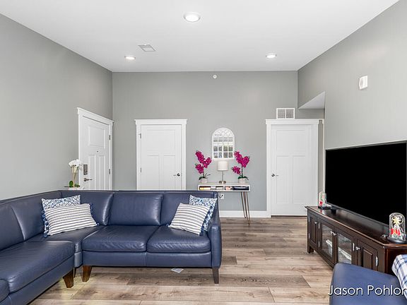 Stunning Penthouse Living! This like-new stacked flat style condo, built in 2020, offers a bright and airy atmosphere with vaulted ceilings in the living room and south-facing windows that flood the space with sunlight. Enjoy the modern kitchen featuring shaker cabinets, granite countertops, a stylish tile backsplash, stainless steel appliances, and stainless hardware.