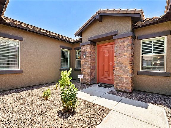 Pride of ownership shows in this incredibly well maintained home that is loaded with upgrades! Original owners since 2012, freshly painted exterior, new outdoor lighting, custom white shutters and crown molding throughout, 18x18 high quality tile flooring and whole house water filtration RO system. Beautiful kitchen featuring upgraded undermount cabinet lighting, new stone tile backsplash, all upgraded appliances including a gas stove and double ovens! $45k worth of updates made to this tropical paradise backyard with covered travertine patio and pool deck, sparkling pool with water feature, large fire pit area, and tranquil accent lighting. Additional features include a brand new garage motor, epoxy flooring and storage in garage and Solar panels paid off at escrow - this is the ONE!