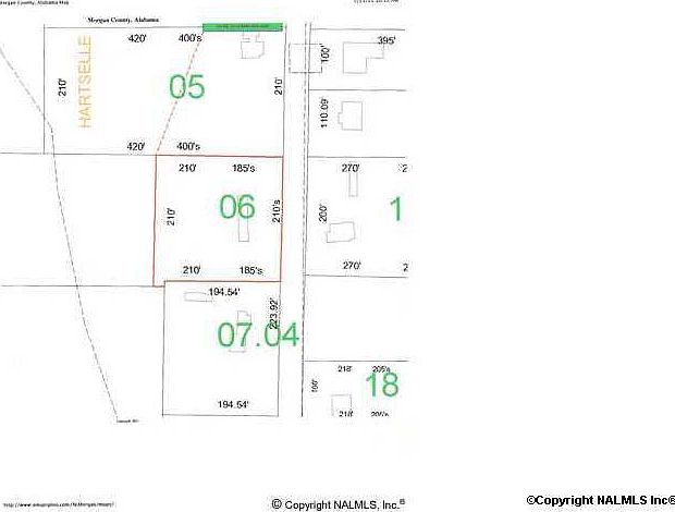 Beautiful building lot just annexed into Hartselle City Limits with mature trees. Annexation means Hartselle City, school districts, building codes, protective services. Lot has appx 210' ft of road frontage and is appx. 210'deep. Septic tank on the property conveys "as is". Lot is not zoned for mobile homes.