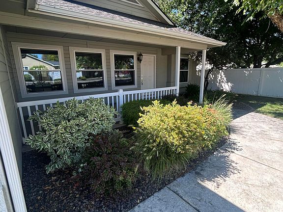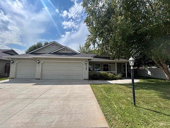 Stunning 4 bed 2-bathroom NW Meridian home has a spacious split floor plan layout that includes an oversized 3 car garage, man door to completely fenced backyard, full auto sprinklers, and take your pick from two large porches (Front & Back)! Gourmet kitchen comes w/ all stainless appliances; fridge, built-in micro, stove, dishwasher. Enjoy granite counters, full backsplash, & walk-in pantry! The very large master suite has a built-in window seat, walk in closet & and can accommodate any sized furniture. Enjoy the double sinks & beautiful new walk in shower! Cozy up to inviting gas fireplace, & enjoy the large great room with vaulted ceilings and plant shelves. All the windows are new Nov. 2023, incl. sliding glass door. Solar panels make this home energy efficient, HVAC system is less than 10yrs old, hardwood in kitchen area & home has been recently painted inside! Conveniently located walking distance to Settler's park, close to shopping, restaurants, and the Village at Meridian. Home is Move in Ready!