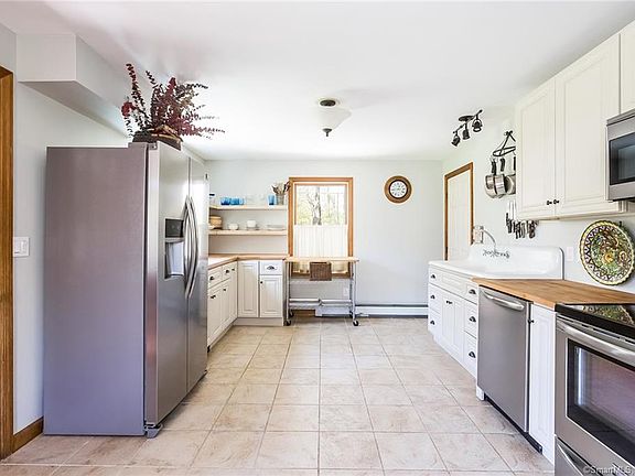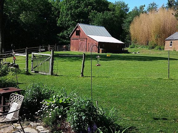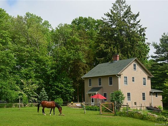 This charming homestead rests on 2.3 private acres located on a cul-de-sac that abuts 186 acres of hiking/horse riding trails perfect for equestrians and outdoor enthusiasts. The front of the property is lined with a gorgeous stonewall, & the grounds are surrounded by mature plantings. Sit outside on the patio perfect for a BBQ, accompanied by a row of raspberry and blueberry bushes. The main home is a unique 1,736 SF colonial that boasts 3 beds, 2 renovated baths, & has a tastefully renovated country kitchen with the original farmhouse sink. The kitchen opens beautifully into the dining area that flows into the spacious living room with beautiful built-ins next to the cozy fireplace. From the living room, you can walk through the french doors that invite you into the cozy den filled with sunlight. Upstairs are 3 bedrooms, including a master bedroom with a walk-in closet tucked behind a rustic sliding barn door. Plenty of storage in the basement, & additional storage/expansion potential in the spacious walk-up attic. The quaint cottage is 396 SF, has a bedroom w/ fireplace, bathroom & kitchenette with rich exposed wood beams throughout. Looking for that bonus space to make your own? Don't miss the modern barn built in 2008. Currently outfitted with 2 horse stalls, it has the capacity for a total of 4 stalls. In addition, there is a 2nd level, as well as a generous storage room that can be used to house your car & any other toys. Ask us about the improvements!