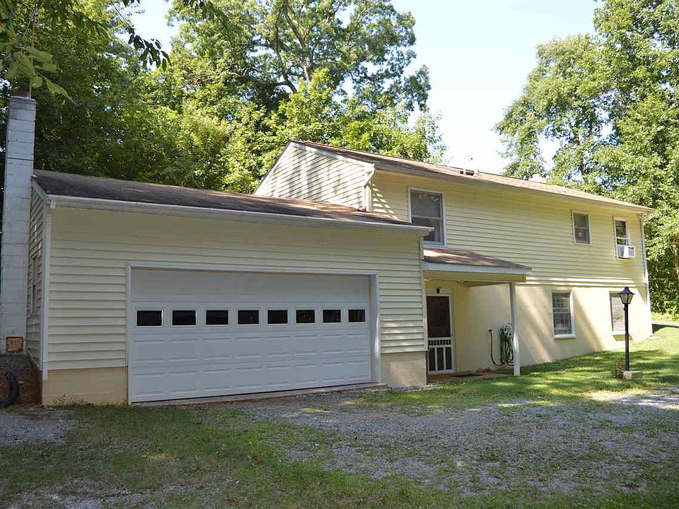 Quiet location on almost 1 acre,room for your animinals,chickens & horse! Country setting with views of the Blue Ridge Mountains. Eat in kitchen, freshly stained deck & front porch, living room with free standing gas heating stove provides lots of heat.. Bathroom offers a skylight, basement offers room to expand. Full bath in basement,great rec room spot. Attached double car garage offers workshop space and room for your cars. Custom built by owner, Easy access from front, walk-out basement see back,large garage.