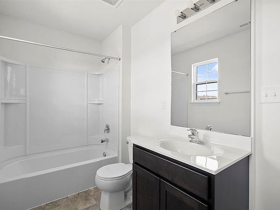 McBride Homes’ St. James Two Story 3BR 2.5BA home ready this spring! Open floorplan perfect for entertaining. 6ft windows & wood laminate flooring throughout main floor. Kitchen features painted white 42” cabinets, peninsula w/breakfast bar, quartz countertops, and stainless steel GE appliances. Dining area features sliding glass doors to backyard. Large windows and ceiling fan in family room. Upstairs is the master suite w/walk in closet & ceiling fan, plus luxury master bath w/5’ shower w/seat & adult height vanity, plus two addtl bedrooms, full bath, & upstairs laundry area. One car garage, upgraded lighting w/ceiling fan prewires, main floor powder room, white two panel interior doors, & more! The lower level includes ¾ bath rough-in for future finish. The Timbers is a 75-acre master planned community surrounded by scenic hills, woods, and common ground. Enjoy peace of mind with McBride Homes’ 10 year builders warranty and incredible customer service! Similar photos shown.