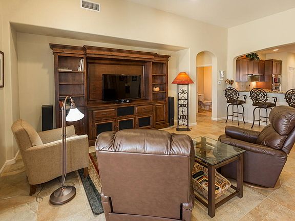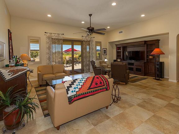 Experience the true nature of resort living in this magnificently appointed and well positioned home at Saddlebrook Ranch. Why compromise on space or privacy when you can enjoy golf course views, mountain views plus the tranquil sounds of the 3 spectacular resort fountains right in your back yard. Enjoy your covered patio back yard all year round with the north facing view for cooler summer days. Relax after a day of golf next to your Kiva fireplace and bath in the ''Purple Mountain Majesty'' beauty of the Catalina mountain range at sunset. A 3 car garage with 4'extension, epoxy floor, loads of storage and water softener are some of the upgrades here. Included with in our home are Plantain Shutters, roll out kit. shelves, upgraded ceiling fans and so much more. Come see for yourself.