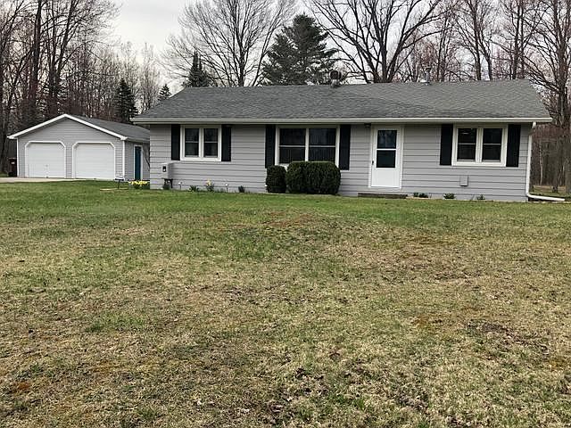 Location, location, location for this charming 2 bed 1 bath home. Situated on 5 acres, featuring a 2 car finished garage/man cave, and a 12x20 fully insulated shed. This home has been tastefully redone with beautiful tile floors, paint, new bathroom, finished garage, newer windows and plenty more making this home in pristine move in condition. The bonus room could easily make this a 3 bedroom, by adding a wall. Located on a paved road(with natural gas) just minutes from us10, but in a quiet neighborhood.